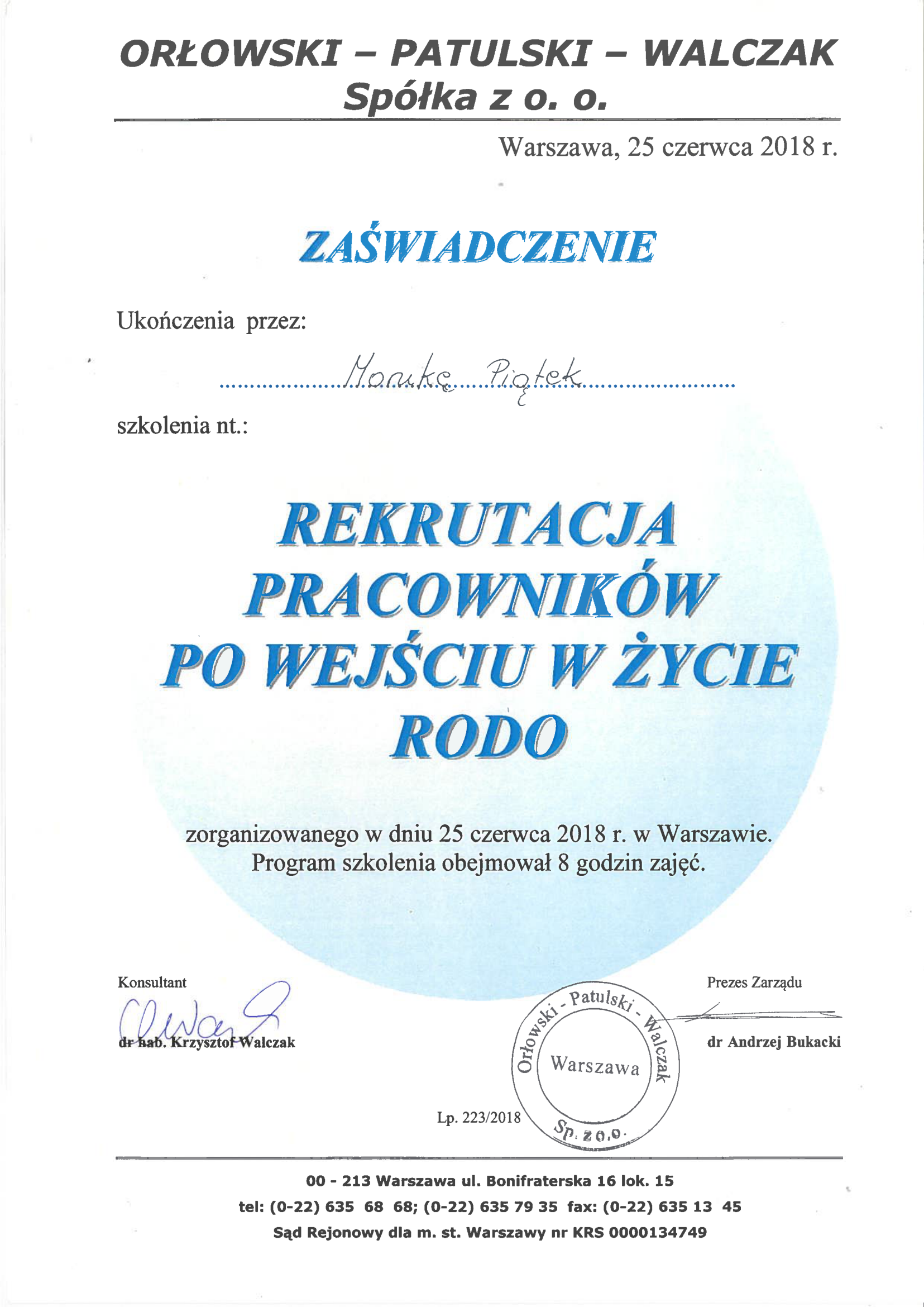 W swojej pracy cechuję się profesjonalizmem, odpowiedzialnością i punktualnością.
